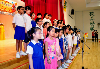 A last minute practice under the guidance of Great Love mummies to ease the students’ nervousness and get ready for a heartwarming and solemn ceremony later on. (Photo by Huang Po-han)