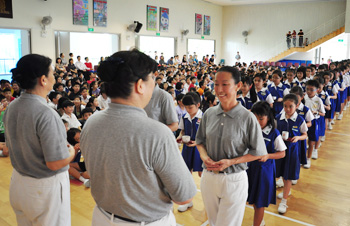 Great Love mummies from Tzu Chi Singapore are entering their fourth year of volunteering at Maha Bodhi School. The mummies visit the school on every Wednesday and, during the short recess time, educate the school children with Jing Si aphorisms through drama, songs and stories. The school highly recognizes the efforts of the Great Love mummies as the programme they designed have helped the students develop positive characters.