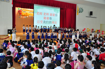 In Singapore, Teachers’ Day is celebrated on the first of September. All schools in Singapore will conduct activities for students to express their gratitude to the teachers. Of the three schools that engage Tzu Chi Great Love mummies as volunteers, this is the third year that Mee Toh School conducted the appreciation tea ceremony for the teachers and the first time for Maha Bodhi primary school to do so, giving the students an opportunity to express their gratitude, well wishes and respect for their teachers.