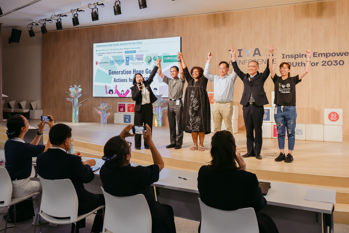 She also hosted the launch of Generation Hope Goals: Actions for the SDGs (GHG). GHG is a collaborative initiative by Save the Children, ESCAP, UNDP, United Nations Framework Convention on Climate Change Regional Collaboration Centre for Asia and the Pacific, Buddhist Tzu Chi Charity Foundation, ChildFund, and Youth Empowerment in Climate Action Platform (YECAP). It aims to engage young minds and leaders in developing their existing innovative climate action solutions linked to the SDGs.
