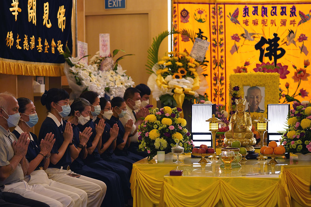 Tzu Chi volunteers take the initiative to go on shifts to recite Buddha’s name for Ng Kok Leong on the evening of April 13, 2022. (Photo by Quah Chin Hin)
