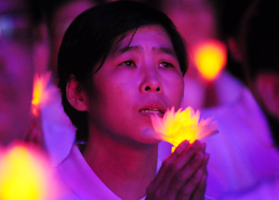 The Chen family transformed their gratitude into action and participated in the Water Repentance Sutra adaptation presented during the 2012 Year-end Blessing Ceremony.(Photo by Alvin Tan)