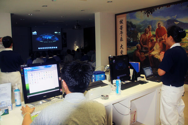 他们与宝仪师姊分享着观赏经藏演绎的感想,宝仪师姊轻轻送上祝福:“要赶快归队,诸佛声声呼唤了。”带着子女前来的这对同修会心一笑,又积极地询问了社区读书会和活动的讯息,不再错失因缘了。