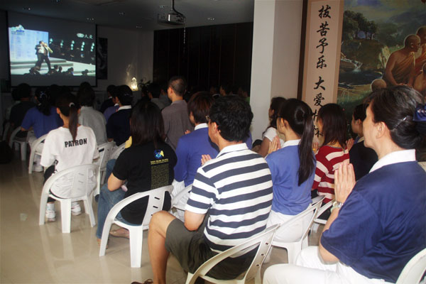 位置于新加坡西北区的福慧中心也同时连线,49位慈济志工、慈青及社区民众就近前来共沾法益。摄 / 杨嘉珮