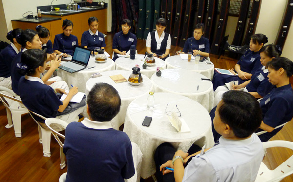 为了让大家更了解水忏入经藏的意义,东区和气于2012年10月21日举办「水忏入经藏演绎说明会」,社区大德们在会后纷纷报名参加来临的岁末祝福入经藏演绎。 (摄 / 吳明君)