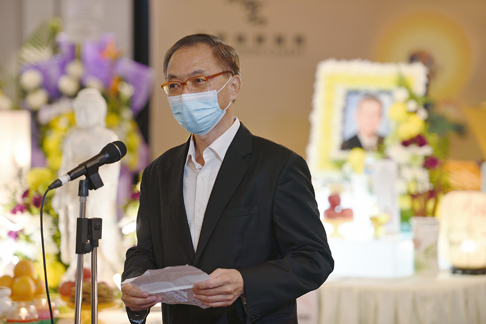 亲友、商业伙伴和慈济人分批前往灵前致哀,图为新加坡慈济执行长(右一)带领同仁代表向沈喜洲致以最高敬意和祝福。(摄/ 吴南凯)