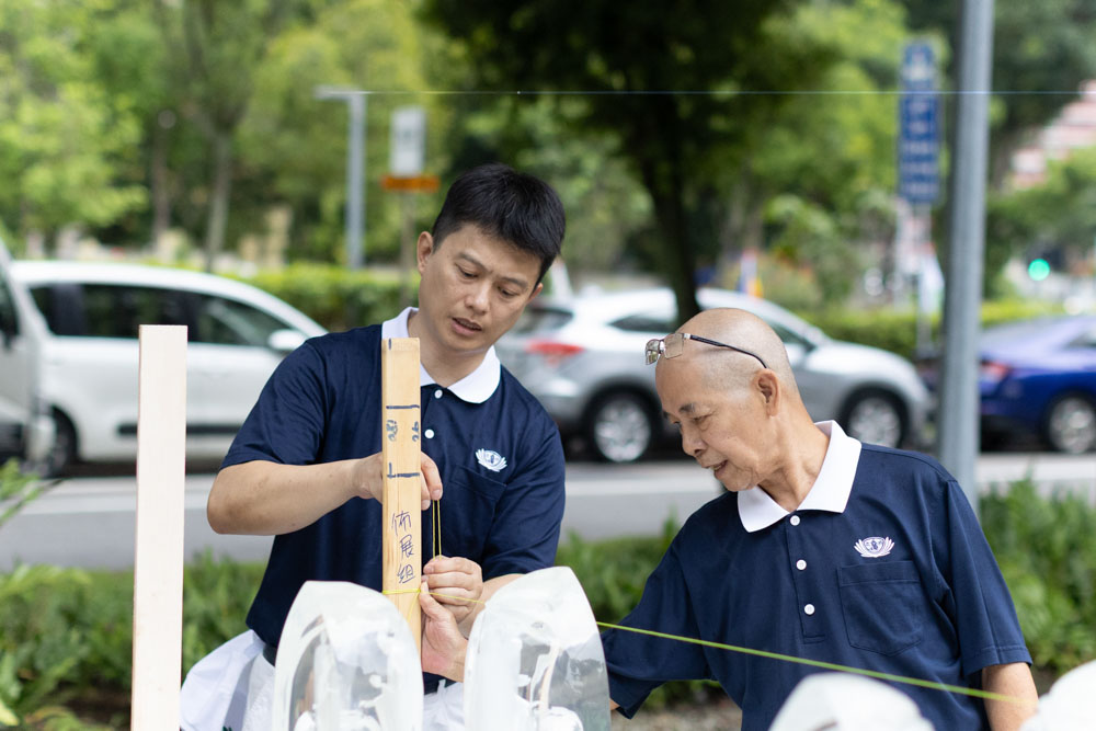 沈志强在工余时间投入志工活动,今年也承担了浴佛大典的布置工作。