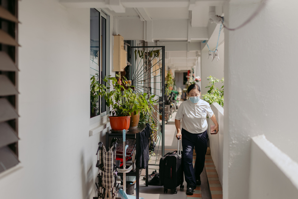 身为居家临终关怀护理师,推着装满医疗器具的行李箱上门往诊,是陈玉心的工作日常。
