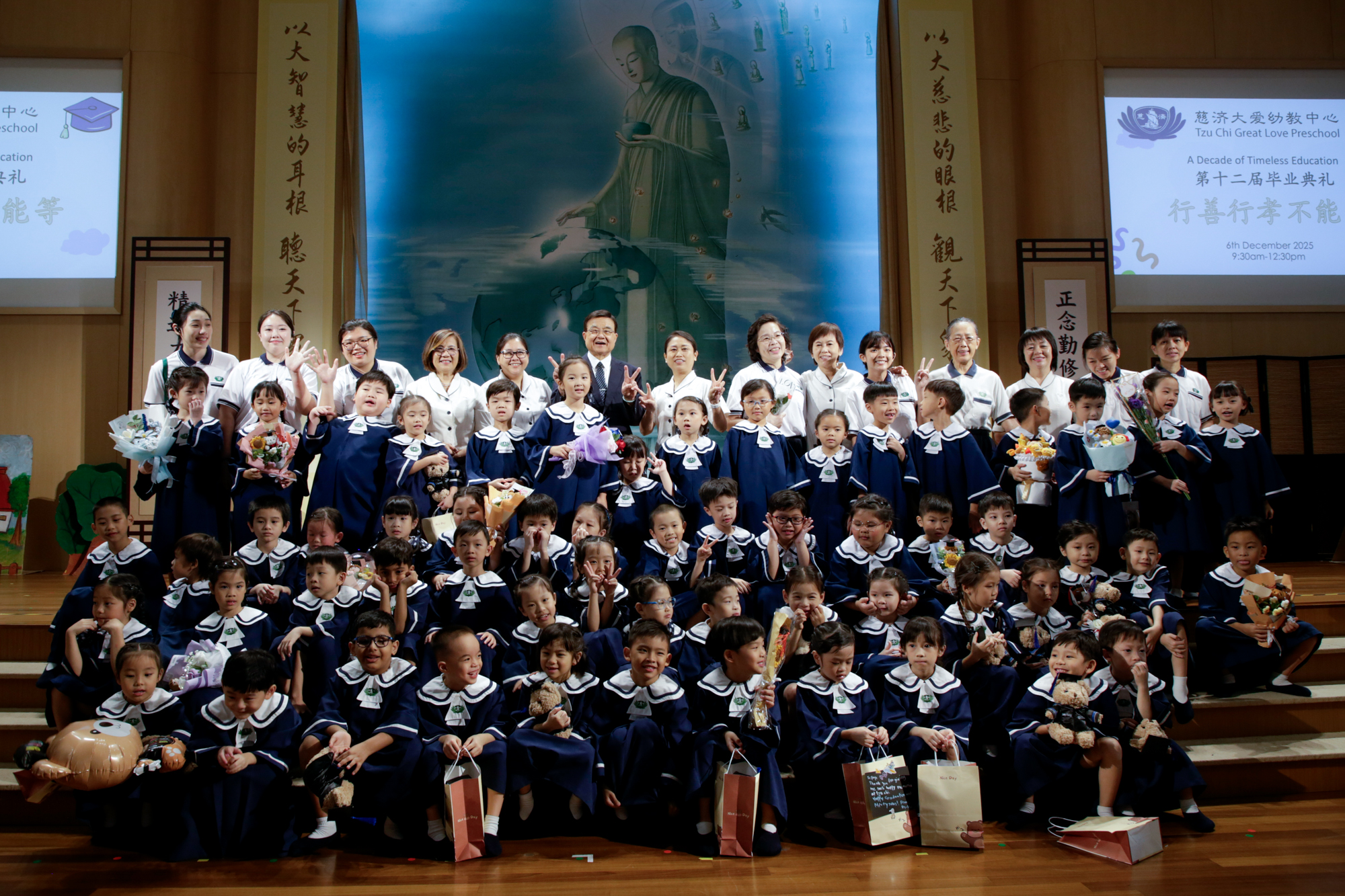 2025年12月6日,义顺、大巴窑和盛港慈济大爱幼教中心的57名毕业生,在教师和家长的祝福下,迎来了人生的第一场毕业典礼。
