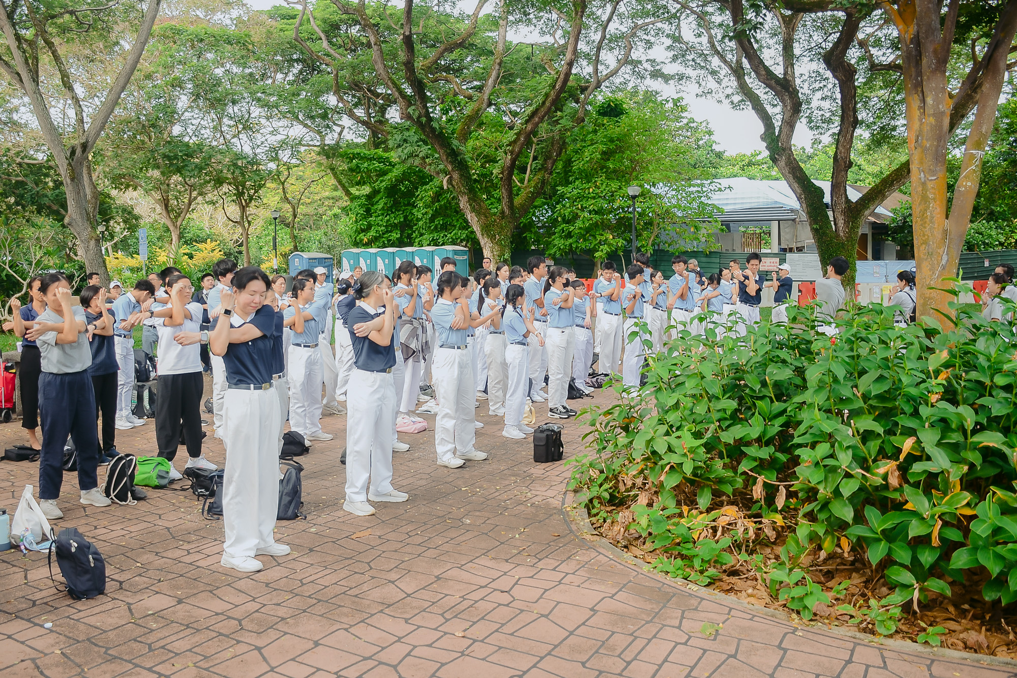 这天一早,有的慈少由父母载送前来,有的自行搭乘交通工具前往集合地点。然而大多数的人则是在不同的定点集合,一起乘坐巴士前往新加坡东边的尽头。